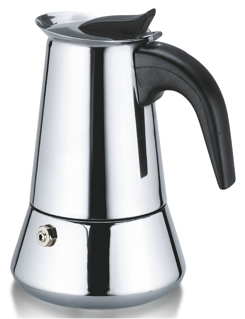 Гейзерная кофеварка Italco Induction, на 4 порции. Кофеварка подходит для всех типов плит, включая индукционные. Корпус из нержавеющей стали. Предохранительный клапан давления, ручка и кнопка выполнены из прочного нейлона.