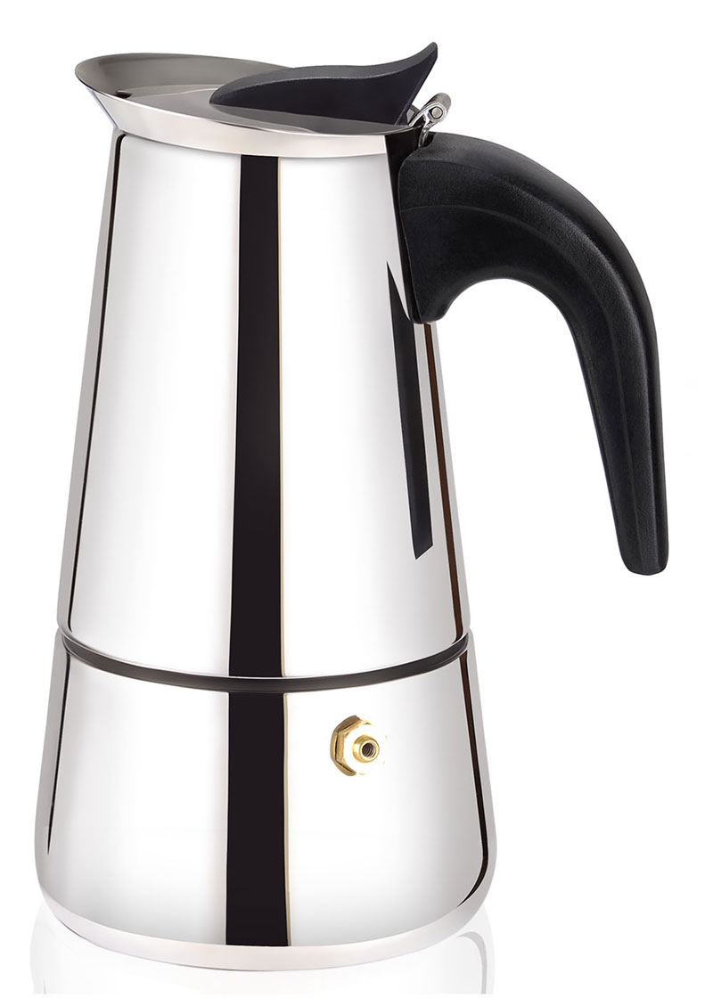 Гейзерная кофеварка Italco Milano 4 порции. Материал нержавеющая сталь, пластик. Элегантная гейзерная кофеварка, выполненная в современном дизайне. Надёжная и технологичная. Подходит для всех плит, кроме индукционных. Стильный корпус изготовлен из качественной нержавеющей стали.
