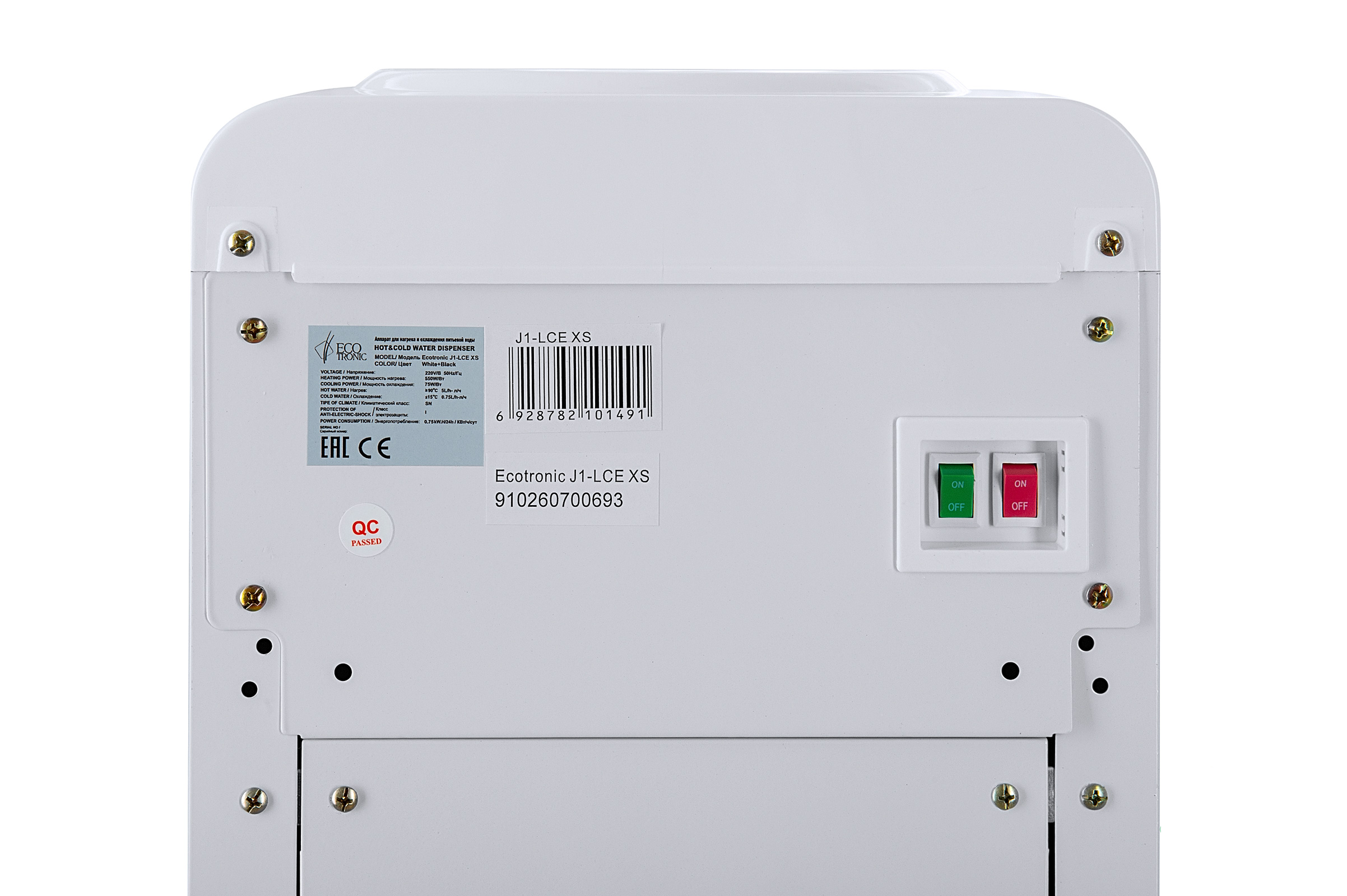 Компактный кулер для воды с функциями нагрева и охлаждения. С небольшим шкафчиком в нижней части. Электронное охлаждение. Корпус белого цвета с черной вставкой в области кранов подачи воды. Индикация режимов нагрева, охлаждения и готовности воды. Краны «нажим кружкой».