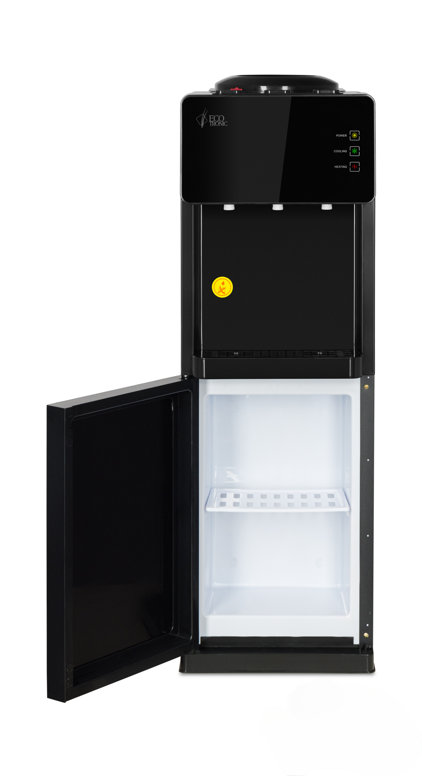 Напольный кулер с электронным охлаждением и шкафчиком в нижней части.