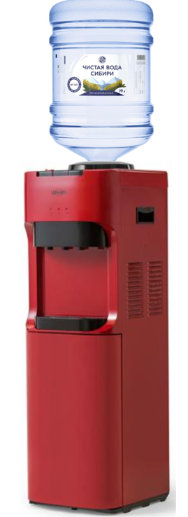 Напольный кулер для воды без шкафчика, без холодильника. Кулер для дома и офиса. Электронное охлаждение (0,6л/ч) + нагрев воды (6л/ч). Цвет красный. Три крана с кнопками. Подходит для домашнего и офисного использования, на предприятиях и учреждениях. Цвет корпуса красный. Бутылеприёмник, верхняя и передняя панели изготовлены из высококачественного, устойчивого к ультрафиолету ABS пластика. Боковые панели стальные. Баки горячей и холодной воды из нержавеющей стали. Три LED индикатора (включение питания, индикатор нагрева, индикатор охлаждения).