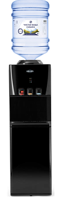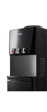 Напольный кулер для воды Vatten V46NKB с компрессорным охлаждением и высокой производительностью нагрева воды - до 6 литров в час (мощность водонагревателя 650 Вт). Шкафчик - холодильник 20л. Кулер прекрасно подойжет для дома и для офиса. Три крана, управление кнопками - горячая, холодная и вода комнатной температуры. Цвет корпуса черный. Бутылеприёмник, верхняя и передняя панели изготовлены из высококачественного, устойчивого к ультрафиолету ABS пластика. Боковые панели стальные. Баки горячей и холодной воды из нержавеющей стали. Три LED индикатора (включение питания, индикатор нагрева, индикатор охлаждения).