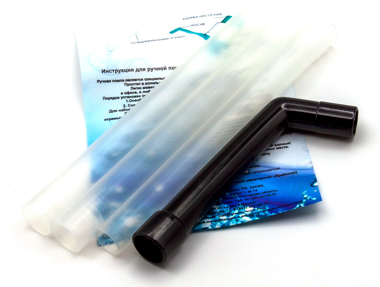 Закрепляется на горлышке бутыли при помощи надежного цангового зажима, длинная составная трубка позволяет откачивать питьевую воду даже со дна бутыли.